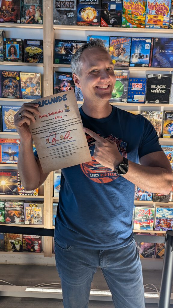 Wir verleihen an besondere Unterstützer den Ehrenlurch Rang. Diese Auszeichnung wird für besondere Verdienste für den Erhalt unserer Projekte und des Spiele-Museums in Hamburg verliehen. Die Verleihung erfolgt ausschließlich ohne Einladung in den Räumen des Retro Spiele Clubs bei zufälligem Erscheinen des Preisträgers. Patrick & Robin haben die Entscheidung einstimmig getroffen. Ehrenlurche, die ihren Hauptwohnsitz nicht in Hamburg haben, erhalten dauerhaft kostenlosen Eintritt an geöffneten Museumstagen. Hamburger Ehrenlurche erhalten dauerhaft 20% Rabatt auf private Gruppenbuchungen.